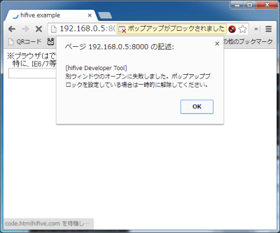 Google Chromeなどポップアップウィンドウをデフォルト禁止しているブラウザではこのような注意アラートが出るかも知れません。ポップアップブロックを解除して再読み込みしてください。