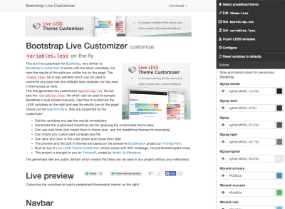 ライブプレビュー付きのBootstrapカスタマイズサービスです。サイト全体もBootstrapで作られているので実例としても興味深いです。