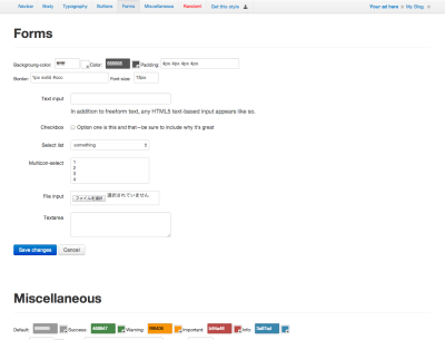 Bootstrap全体のカラー変更、フォント、サイズなどをライブプレビュー付きでカスタマイズできます。どの要素がどの部分に当てはまるのかも分かるのでBootstrapのカスタマイズだけでなく、その構造理解にも使えそうです。