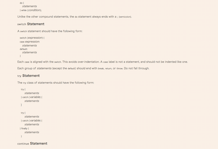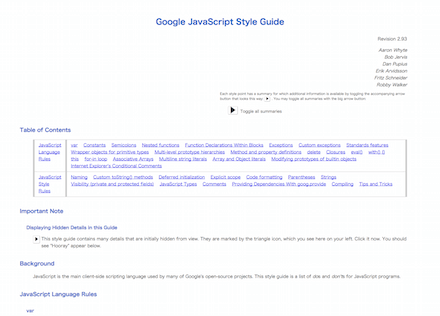 Oracleに買収されたSunが作成したJavaのコーディング規約をベースにしたJavaScriptコーディング規約になります。量は多くありませんが基本は抑えてあります。