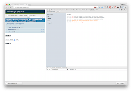 ただし予めnpmで grunt-devtools をインストールし、gruntfile のふぁいるディレクトリで grunt-devtools を実行しておく必要があります。タスクは一回実行の他、watchのようなバックグラウンド実行にも対応しています。
