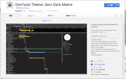 DevToolsにはカラーテーマも多数公開されています。白黒だけでなく、可読性を高めるためのテーマがありますのでChromeストアで探してみると良いでしょう。