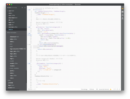 他にもCoffeeScript拡張機能を入れると、保存したタイミングで自動生成してくれます。