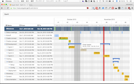 デモはAngular Gantt – Gantt chart component for AngularJS (Demo)にて試せます。