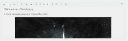 HTML5対応、セマンティックなエディタです。15KB程度と軽量なのも特徴です。画像の埋め込み、フルスクリーン表示もサポートしています。