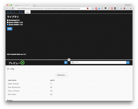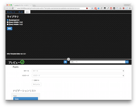 デフォルトのライブラリはBootstrap 3.0となっていますが、jQuery Mobileに切り替えることも可能です。