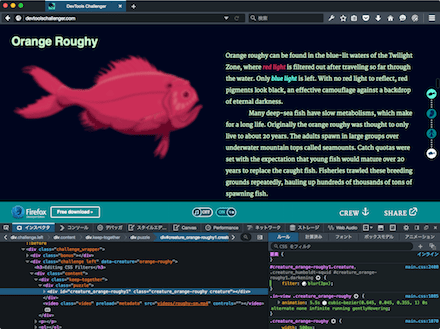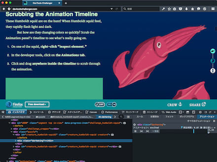 Firefox Developer EditionのサイトではDevTools Challengerというコンテンツを用意しています。これは深海へ潜行していくのを通じて開発ツールの使い方を学んでいくコンテンツです。