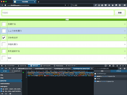 ブレークポイントを設定したり、ウォッチを入れることができます。同時にコンソールを使うこともできます。