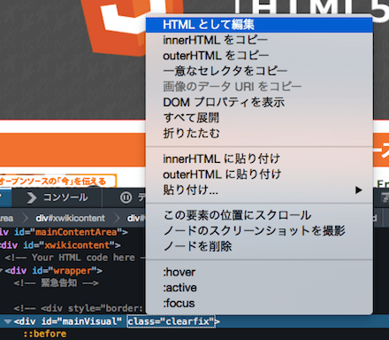 該当部分のDOMはハイライト表示されるのでわかりやすいです。