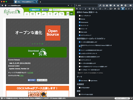 Firefoxには2つの種類があります。一つは一般ユーザ向けのFirefoxで、もう一つはWeb開発者をターゲットにしたFirefox Developer Editionになります。Firefox Developer Editionは標準のFirefoxをベースに、開発に役立つアドオンがインストールされているものになります。今回はそのFirefox Developer Editionをベースにしていきます。