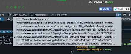 さらにユニークな機能としてファイルの切り替えがあります。iframeで読み込まれているソーシャルボタンなど、外部サイトの解析を行う際に対象ファイルを切り替えることができます。