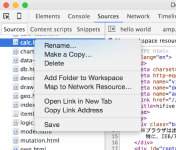 これでSourcesタブの中からWorkspaceに登録し、ネットワークアクセスしているファイルは一覧から消えます。なお登録後は一度リスタートする必要があります。