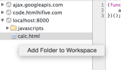 使い方は Sources タブで Add Folder to Workspaceを選択します。