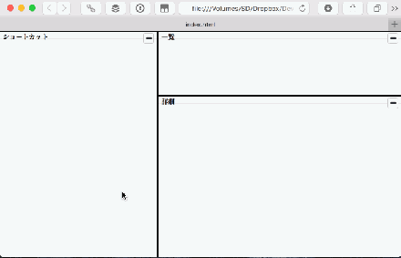 ここまでの実装をhifiveのサンプルページ にて公開しています。コードはGitHub上に公開していますので確認したい時に参考にしてください。次回は左側のペインにツリービューを実装します。
