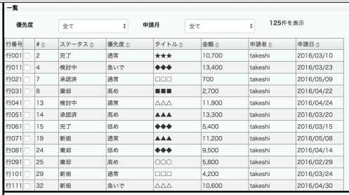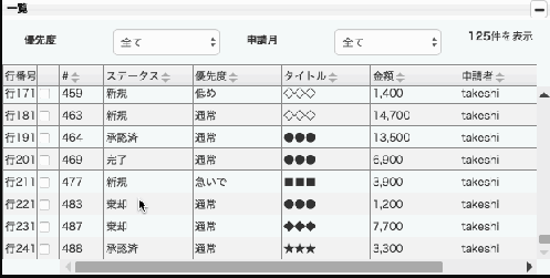 そして業務アプリとしてよくありがちなソートであったり、カラムのドラッグ&ドロップによる移動も可能です。