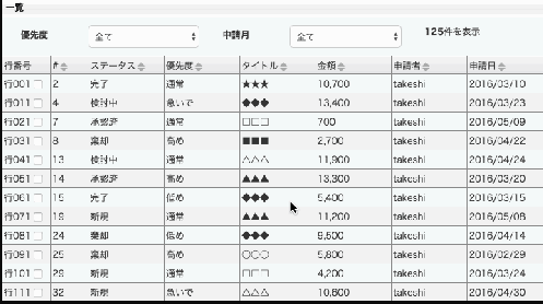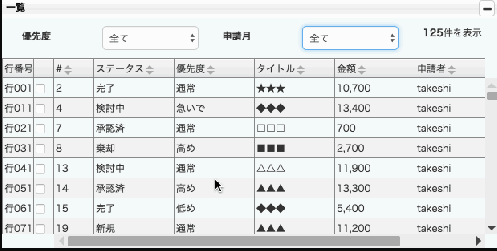そして業務アプリとしてよくありがちなソートであったり、カラムのドラッグ&ドロップによる移動も可能です。