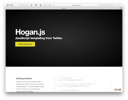 Twitterの開発しているテンプレートエンジンで、テンプレートをコンパイルするのが一つの特徴となっています。これによってテンプレートがJavaScriptに変換され、実際に描画が高速になります。