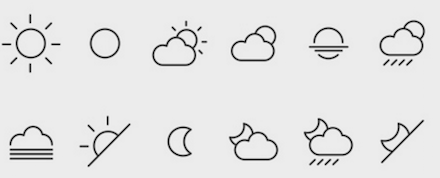 こちらも天気関係に特化したアイコンです。42 Weather Iconsアイコンと比較するとやや数が多く線が太いのが特徴的です。