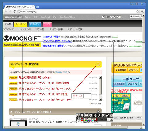 Google Chrome用。指定した範囲を画像化し、さらに注釈を書き込んでメールや生成されたURLのシェアができます。