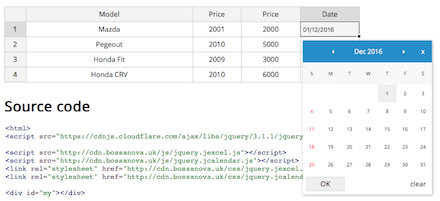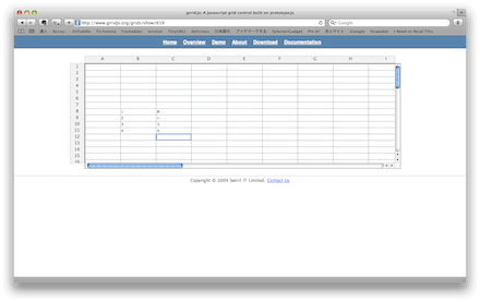 ページ内に埋め込んで使うのが前提になっている表計算ライブラリです。入力値のフォーマットを指定したり、チェックボックスやドロップダウン、カレンダーを使った入力も可能です。一つのページ内に複数埋め込むこともできます。