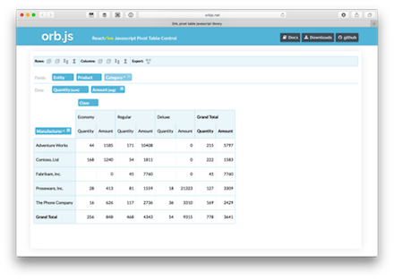 Web上でピボットテーブルが作れるライブラリです。カラムをドロップするとダイナミックに内容が変化します。さらにカラムを入れ子にでき、ドリルダウンしながら値の確認もできるようになっています。