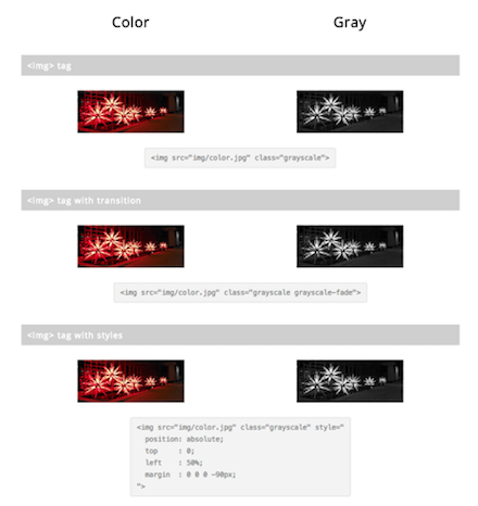 様々な手段で画像をグレースケール化します。CSSだけ、JavaScript、画像のタグ、スプライト画像への適用などです。JavaScriptでの画像なので、グレースケール化を解除するのも簡単です。