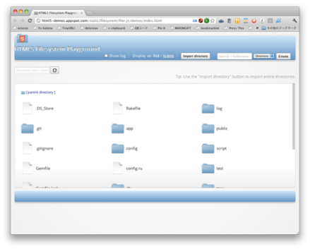 アイコンとリスト表示がサポートされています。画像やHTMLであればプレビュー機能が実装されています。HTML5のFile APIを体験できるソフトウェアになっています。