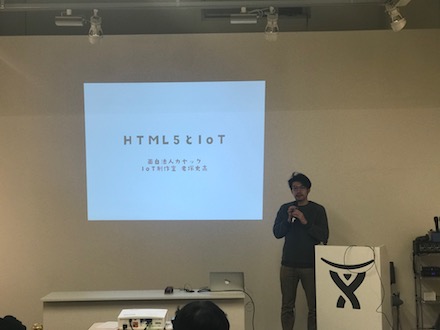 プレゼンではスマートフォンを動かすことでサーボモーターが動くデモが紹介されていました。PCとArduinoを連携させ、HTML5で受け取ったスマートフォンの動きをArduinoに伝えています。モノが動くというのはインパクトが強く、参加者の目を引いていました。