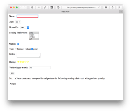 入力チェックを兼ね備えたWebコンポーネントライブラリです。一行テキスト、テキストエリア、ラジオ、チェックボックス、セレクト、スターレーティングなど幅広く対応しています。