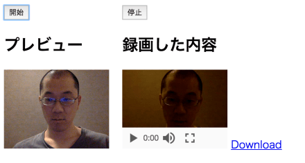 レコーディング中は非同期処理になるので startRecording という関数の中で処理を行っています。 MediaRecorder のインスタンスにWebカメラの映像を指定し、 start メソッドを実行するとレコーディングが開始されます。レコーディング内容は ondataavailable メソッドで呼び出されるので、これを変数に残し続けます。
