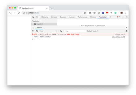 開発者ツールのコンソールに Hello, WebAssembly! と出力されれば完成です。