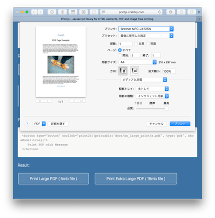 表示されているHTMLではなく、全く異なるコンテンツを印刷できます。PDFを印刷したり、画像一つだけを印刷すると言ったこともできます。テキストを追加することも可能です。